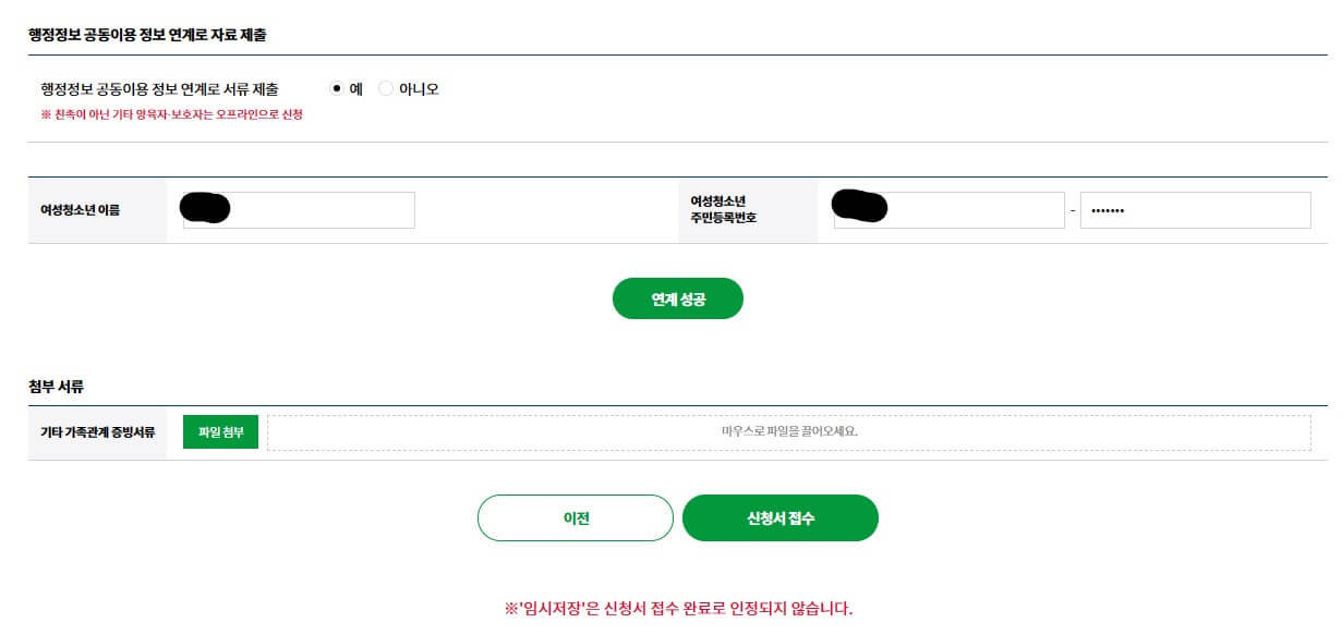 | 5. 대상자(여성 청소년) 및 보호자 인적 사항 등록 | 6. 중복 신청 및 모바일 카드 발급 확인 |
