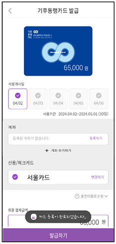 기후동행카드 신용·체크카드 충전 개시
