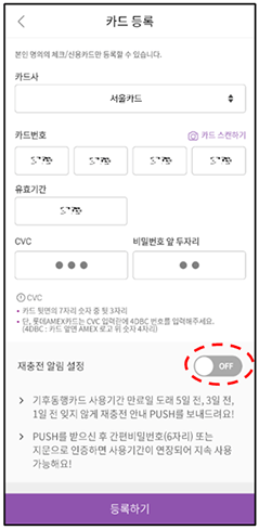 ※ 사용기간 만료(5일 전, 3일 전, 1일 전) 재충전 알림을 받을 수 있어 편의성이 더욱 강화되었습니다.
