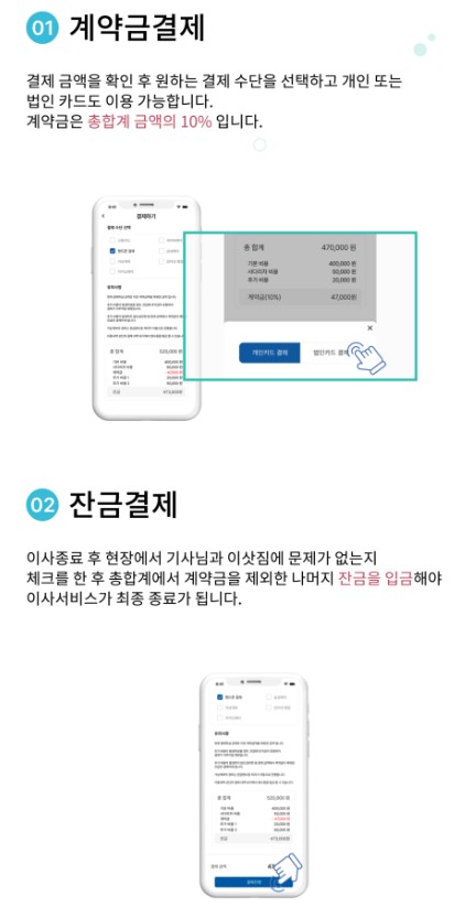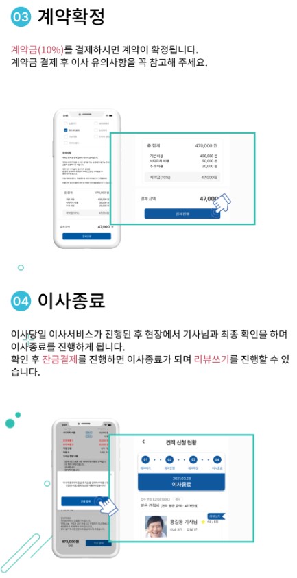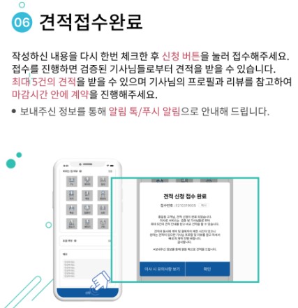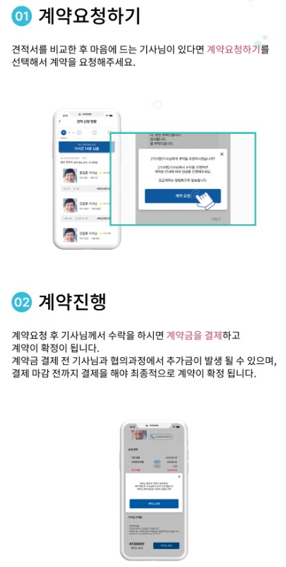 이용내역을 통해 받은 견적서를 비교한 후 원하는 기사님과 계약을 진행해 주세요.